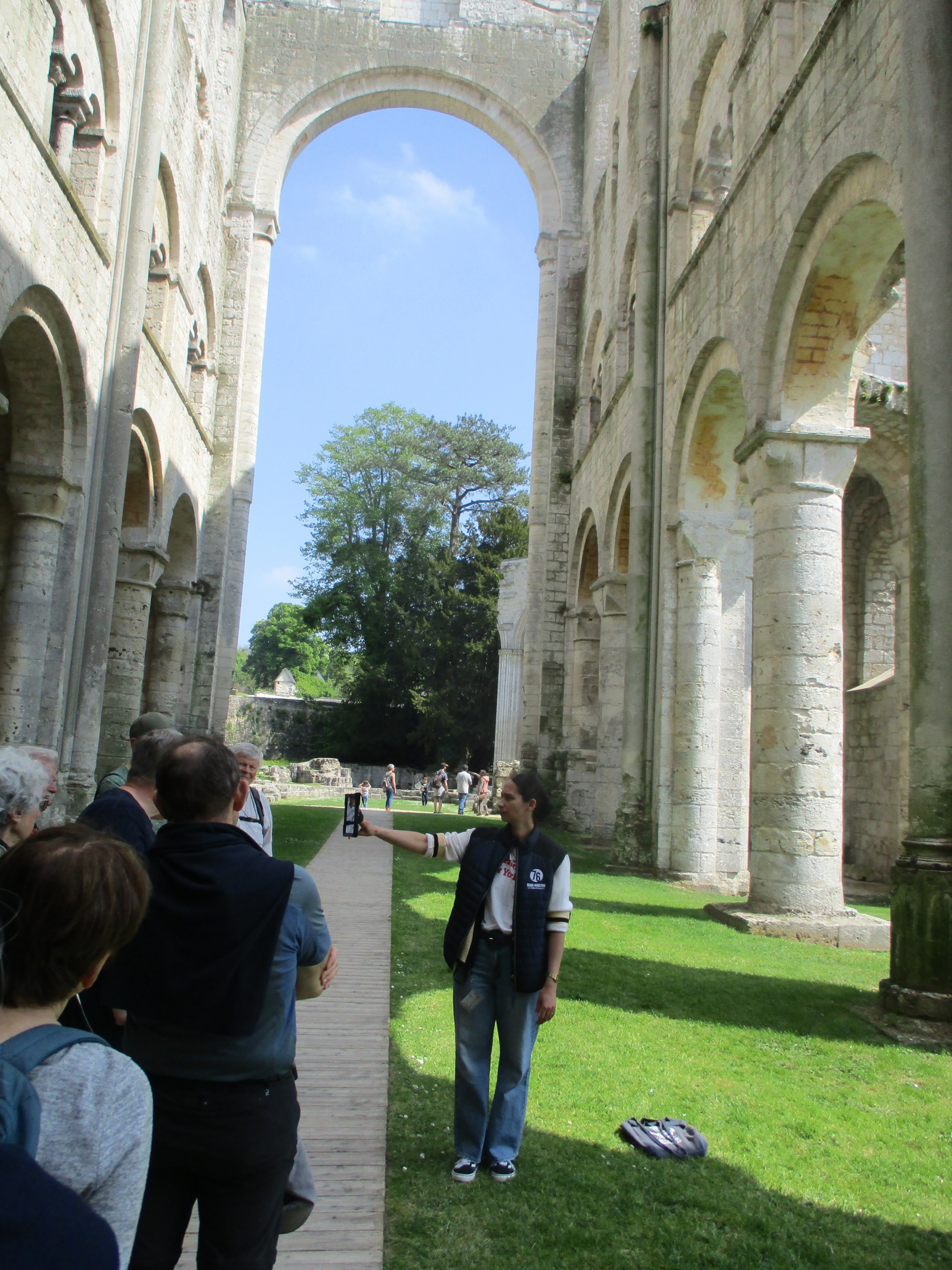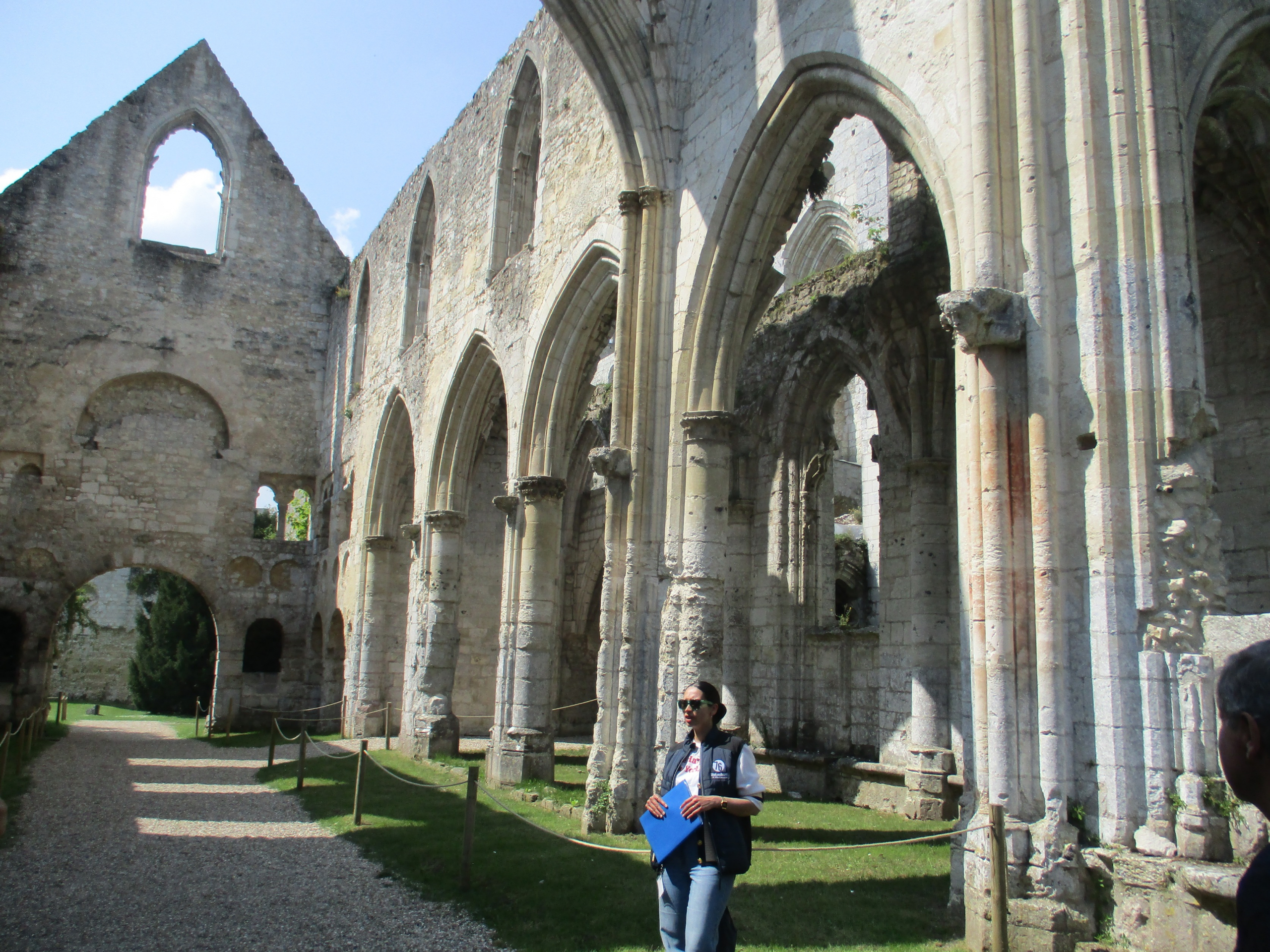 Ce dimanche matin à Jumièges, nous sommes 11 marcheurs à nous mettre en route avec Richard pour guide. Nous montons vers les hauteurs en passant près de l’église de Jumièges, en chemin nous croisons les parcours de golf avant de redescendre vers la Seine. Nous passons par le bac de Jumièges pour admirer le manoir de la ferme des Îles, au loin les tours de l’abbaye. Ensuite nous prenons le verre de l’amitié avant de pique-niquer sur les bancs de la petite place. L’après-midi c’est une visite guidée de l’abbaye avec une guide passionnée de ce monument. Ensuite nous nous retrouvons pour le goûter partagé avant de nous quitter. Christian
