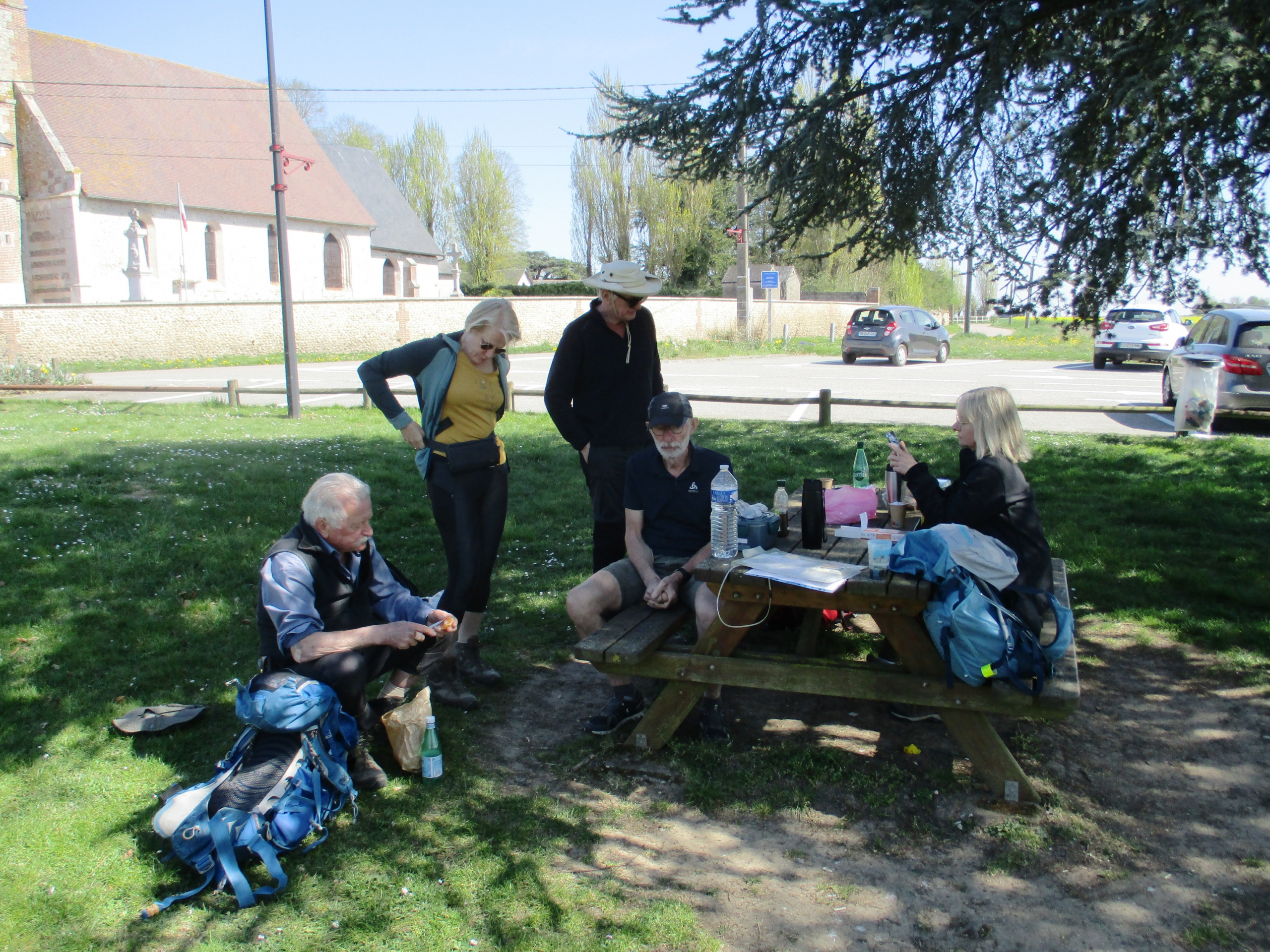 Après le repas, en suivant la route, nous gagnons Jumelles où nous visitons l’église, Sylvie ayant la clé. Nous rencontrons également Madame la Maire. Ensuite continuation jusqu’à Coudres où nous visitons également l’église. Puis retour à Décathlon pour le goûter. Au total nous avons vérifié et rafraîchi 20 km de Chemin. Christian
